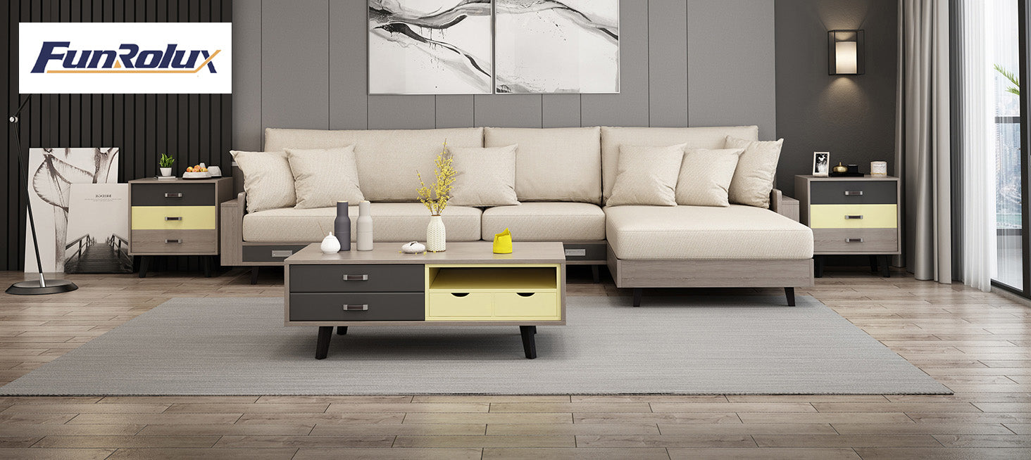 FUNROLUX Folding Dining Table with Storage Rack and 2 Drawers, Foldable Kitchen Table Extendable Versatile Table, Space Saving Dining Table with 4 Support Legs (Dark Grey)