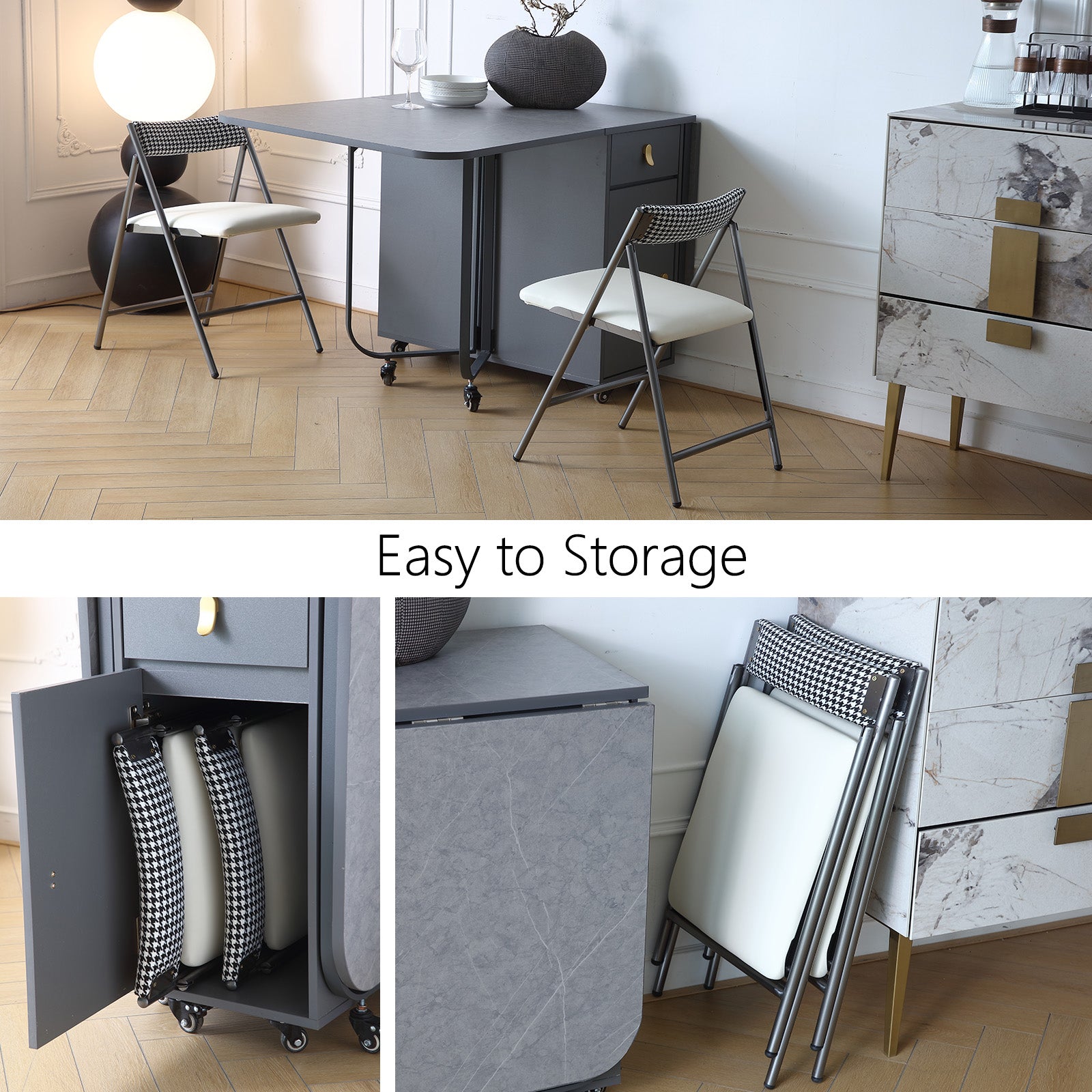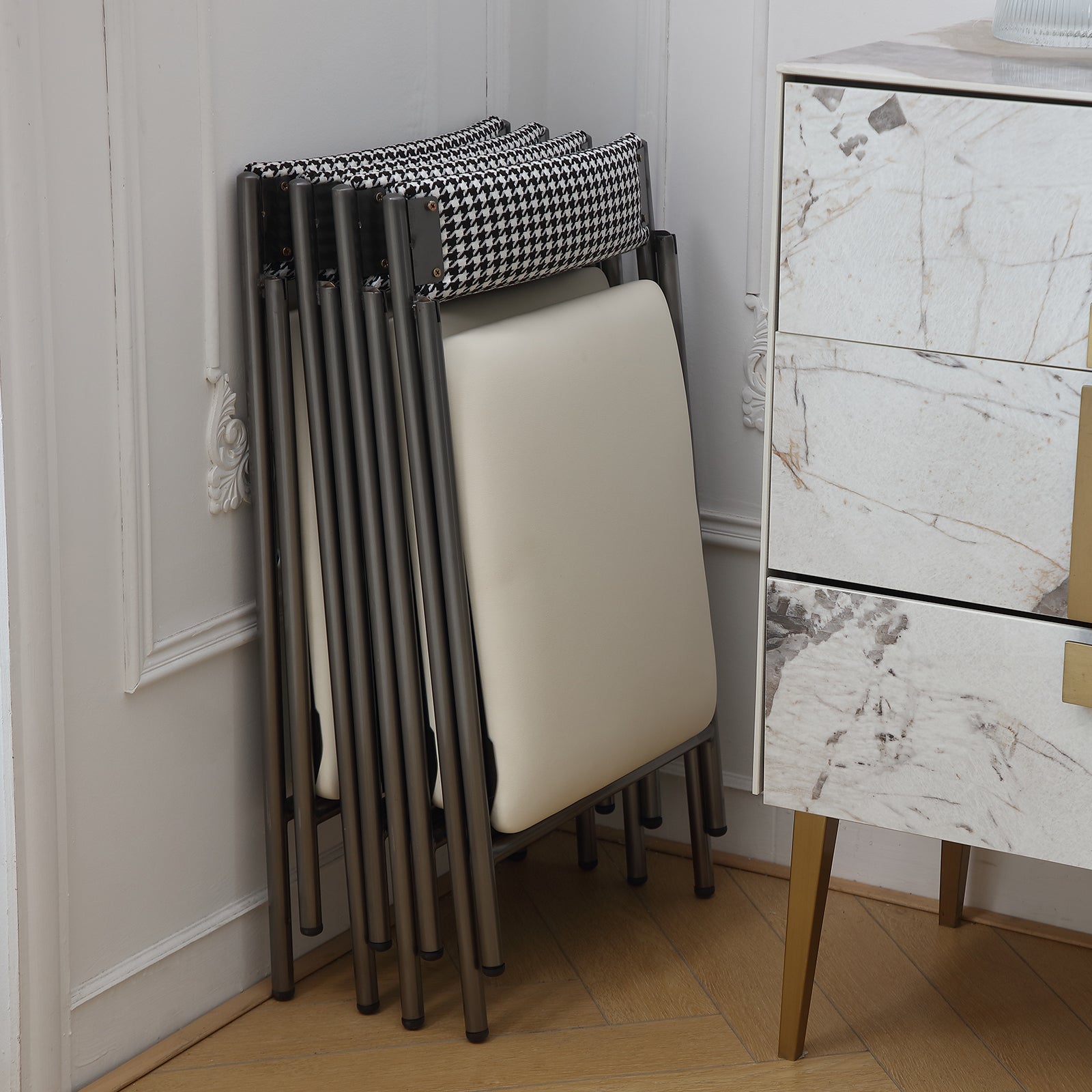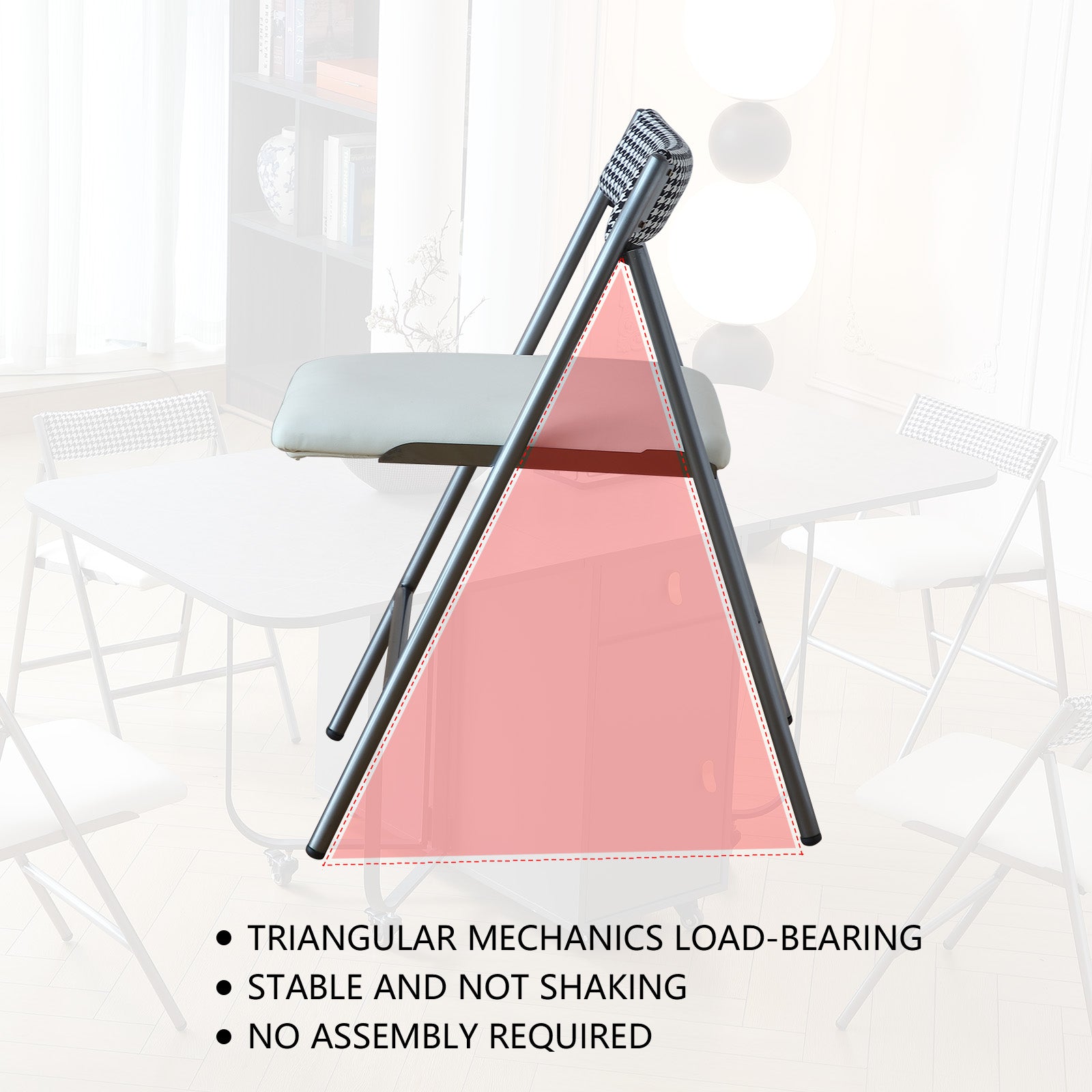 - Space Saving Design: The folding dining chairs is used with our folding dining table, you can put 1-4 folding chairs into the folding table storage rack, which can save space and make the kitchen more tidy