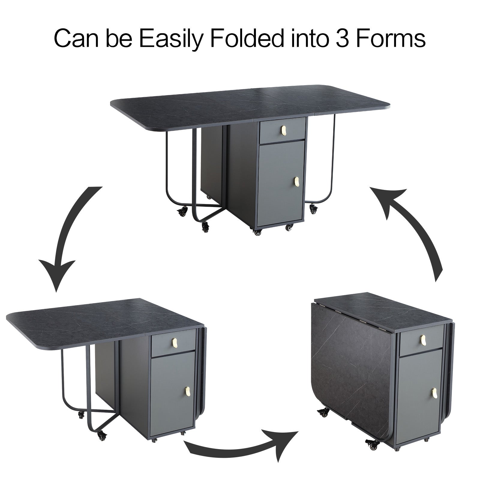 FUNROLUX Folding Dining Table with Storage Rack and 2 Drawers, Foldable Kitchen Table Extendable Versatile Table, Space Saving Dining Table with 4 Support Legs (Dark Grey)