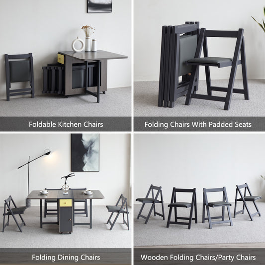 FUNROLUX Folding Dining Chairs with Padded Seats 2 Pack Wooden Folding Chairs for Kitchen Table Event Party Indoor 198LB Weight Capacity (Grey)