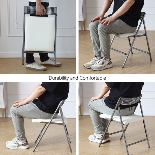 FUNROLUX Folding Dining Chairs Set of 2, Metal Folding Chairs with Padded Seat Foldable Dining Chairs for Kitchen Dining, Party Events (Grey)