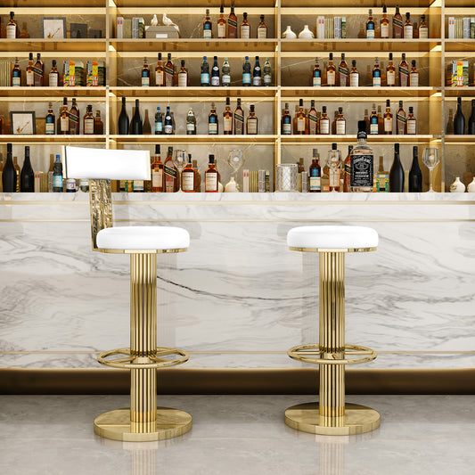 FUNROLUX Counter Height Bar Stools with Back, Modern Adjustable Height Barstools Swivel Bar Chairs with Polished Gold Stainless Steel Legs and Comfortable Cushion for Kitchen Island Counter (White)